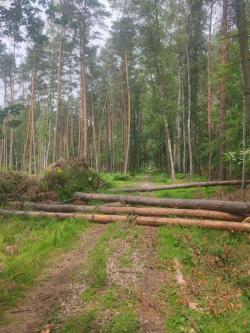 Prace leśne - np. ścinka drzew, zrywka, wywóz. Miejsca, w których tego typu prace są prowadzone, są objęte zakazem wstępu i są oznaczane tablicami ostrzegawczymi, ustawionymi na drogach i szlakach leśnych. Należy bezwzględnie stosować się do zakazu poruszania się po tych terenach.
