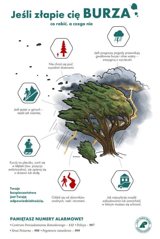 Niekorzystna pogoda - burza, silny wiatr, zalegający na drzewach śnieg, oblodzone drogi i inne niekorzystne zjawiska atmosferyczne zwiększają ryzyko nieszczęśliwych wypadków.